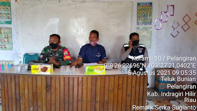 Kegiatan dilaksanakan di aula kantor desa Teluk Bunian Kecamatan Pelangiran Kab.Inhil dengan dihadiri Kades Teluk Bunian di wakili oleh Sekdes bpk Rismadi, Bhabinkamtibmas desa Teluk Bunian Bripka Ibrahim Hot. SH,Staf desa Teluk Bunian,Seluruh RT, RW dan Dusun desa Teluk Bunian,Toga,Today dan Tomas dan Perwakilan masyarakat desa Teluk Bunian.