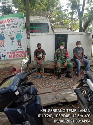 SERIBUPARITNEWS.COM, TEMBILAHAN - TEMBILAHAN - Sebagai Upaya dalam menerapkan protokol kesehatan,  Babinsa Koramil 01/Tembilahan Kodim 0314/Inhil  sertu M.yasin melaksanakan Komsos bersama tukang ojek pak Hardodi Kamis (05/08/2021)