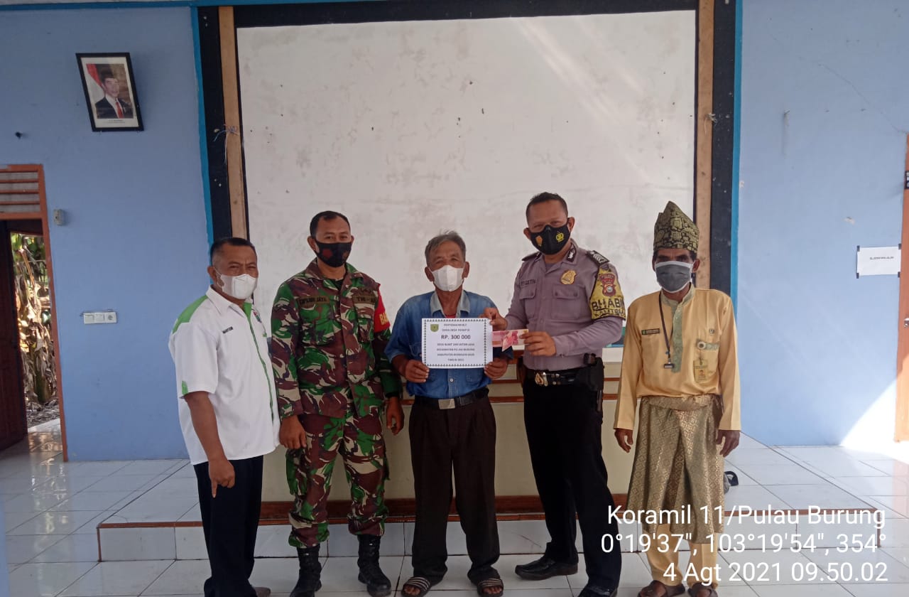 Dalam penyaluran Bansos juga disaksikan Kepala Desa Atim Khoirul Anam, Bhabinkamtibmas Brigadir