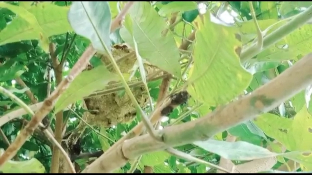 Tawon tersebut, kata Fadli, bersarang di Belakang Rumah di  atas pohon kuini milik ibu Indrawati, menurut informasi selama tawon bersarang itu tidak pernah menyengat pemilik rumah atau warga sekitar.