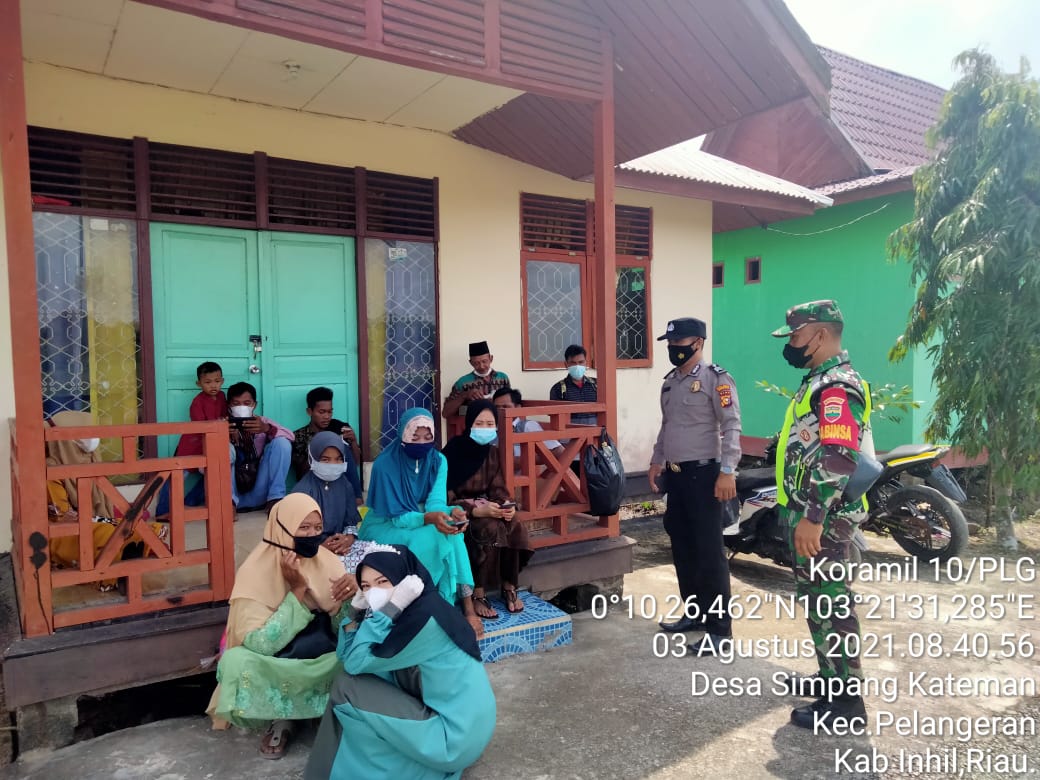 Babinsa dan babinkamtibmas bersinergi dalam pelaksanaan protokol kesehatan yang dikonsentrasikan kepada warga Desa Simpang Kateman Kecamatan Pelangiran