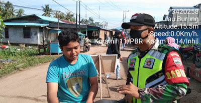SERIBUPARITNEWS.COM, PULAUBURUNG - Sebagai Upaya dalam Menerapkan Protokol kesehatan, Babinsa Koramil 11/PBR Serda Siswanto melaksanakan Kegiatan  Penegakkan Disiplin Protokol Kesehatan Covid-19 Selasa (03/08/2021)
