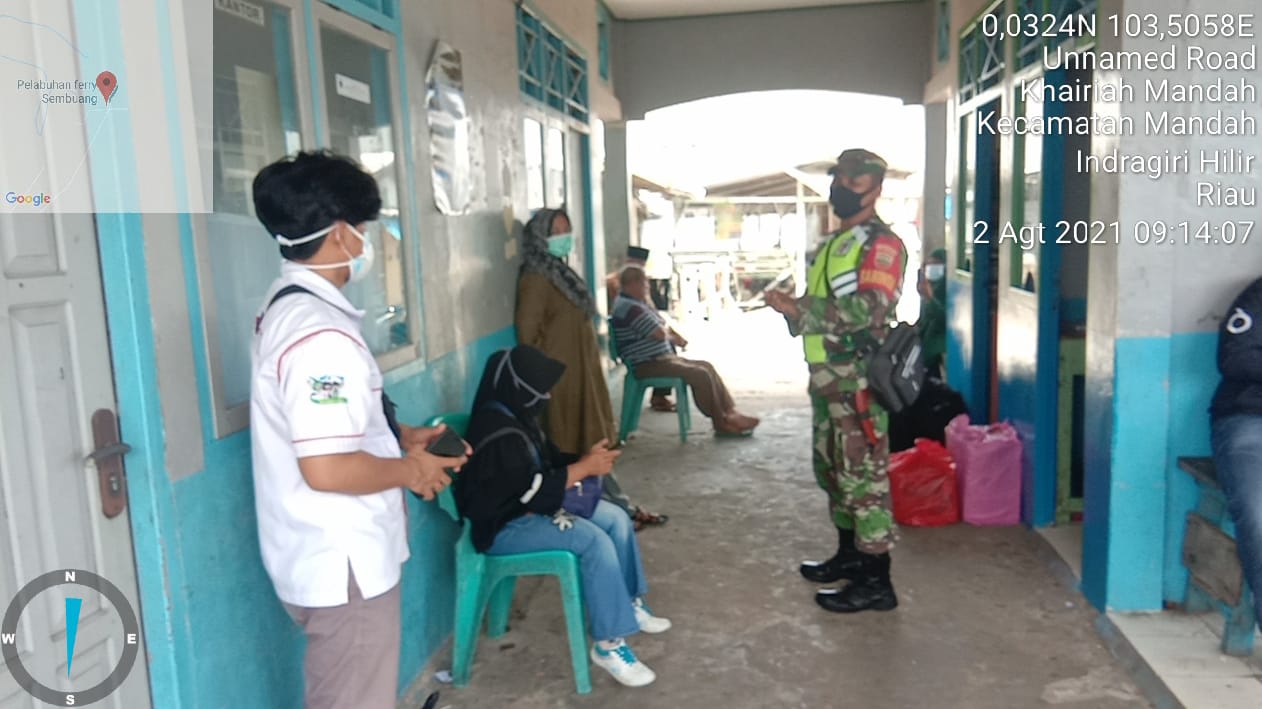 SERIBUPARITNEWS.COM, MANDAH- Dalam Pemberlakuan PPKM Level 4, Babinsa Koramil 08/Mandah Kodim 0314/Inhil Serda Erik A.Sibarani  melaksanakan penegakan disiplin protokol kesehatan di Pelabuhan Bod Pasar Mandah Senin (02/08/2021)