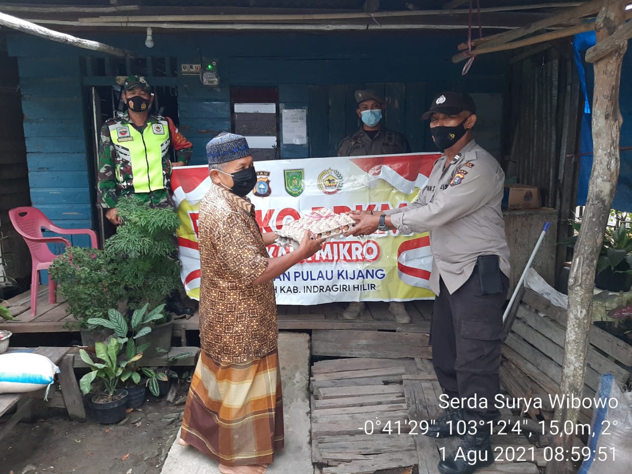 SERIBUPARITNEWS.COM, Pulau Kijang,"-Babinsa Koramil.07/Reteh dan Anggota Polsek Reteh dan Sat Pol PP dampingi memberikan sembako kepada warga yang terpapar visru Corona di jalan Kelapa gading Kel P Kijang, Bantuan tersebut untuk meringankan beban sekaligus supaya fokus pada proses penyembuhan.Minggu 01/08/2021