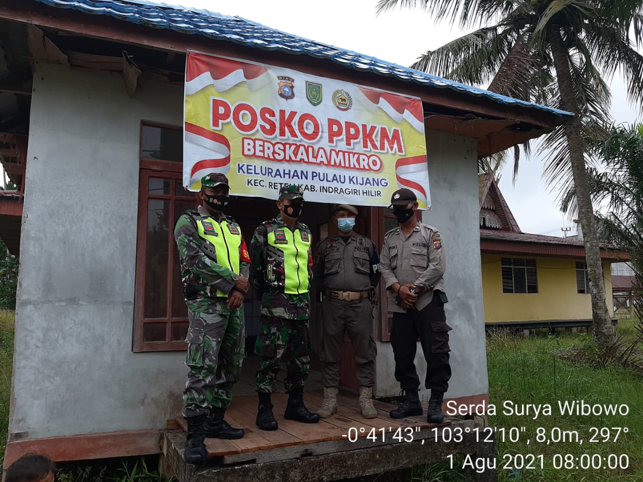 didirikannya Posko Penerapan Pembatasan Kegiatan Masyarakat (PPKM) Mikro Babinsa Kelurahan Pulau Kijang bersma Bhabinkamtibmas Polsek Reteh Aiptu Erpan dan Sat Pol.PP Kelurahan Pulau Kijang Yudi Kurniawan rutin memantau Posko PPKM di Desa binaannya.Minggu 01/08/2021