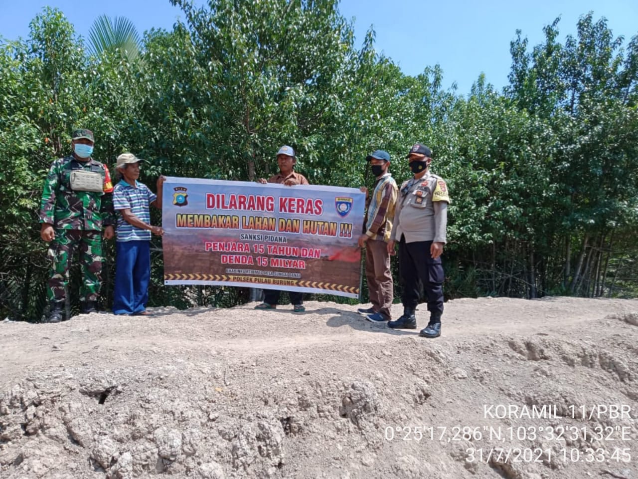 Sertu Arif Darmawan Babinsa Koramil 11/Pulau Burung Bersama Babinkamtibmas Sosialisasikan Pencegahan Karhutlah dengan Pemasangan Spanduk di bebarapa titik yang isinya "Dilarang Keras Membakar Lahan "