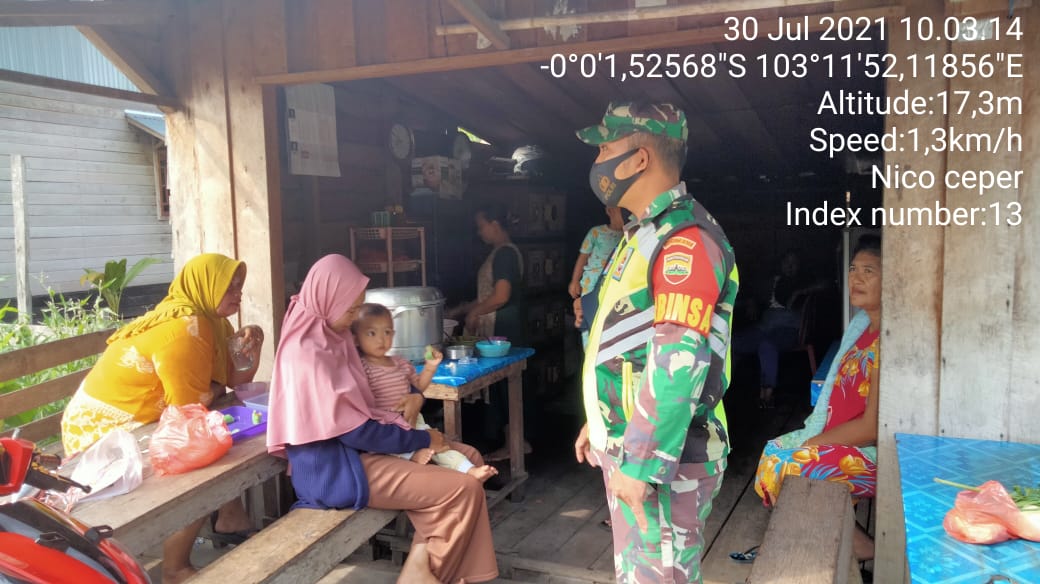 Babinsa juga melaksanakan pembatasan mobilitas warga di Hari pasar sebagai dukungan dari PPKM Level 3 sesuai Instruksi Bupati Indragiri Hilir