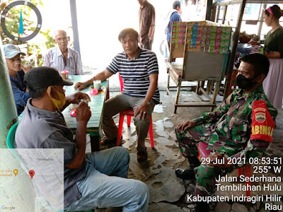 SERIBUPARITNEWS.COM, TEMBILAHAN - Sebagai Wujud kemanunggalan TNI dengan rakyatnya di situasi apapun, Babinsa Koramil 01/Tembilahan Kodim 0314/Inhil  Pelda Jaharzam melaksanakan Komsos bersama tokoh masyarakat Kamis (29/07/2021)