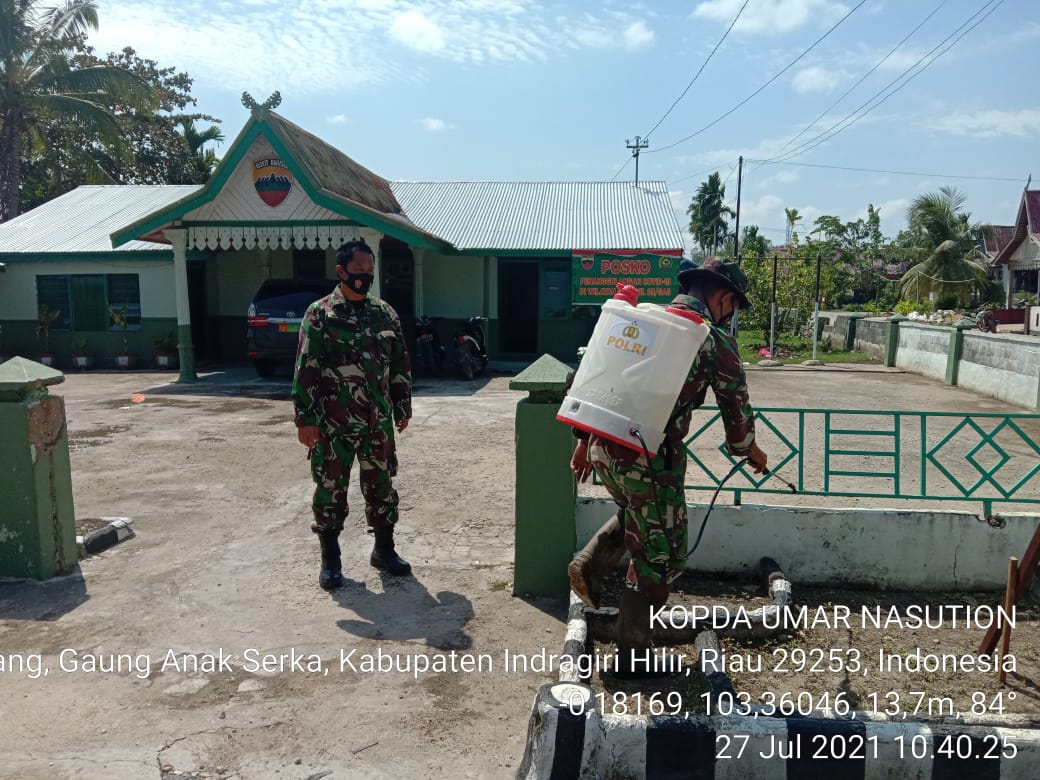 Danramil 05/Gas Lettu Selamet H Pimpin Penyemprotan Desinfektan untuk mencegah penularan Covid -29 di Makoramil dan Perumahan.