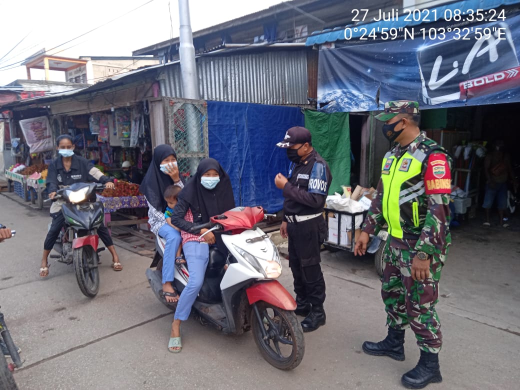 SERIBUPARITNEWS.COM, PULAUBURUNG - Upaya Penerapan Protokol Kesehatan terus dilaksanakan, Babinsa Koramil 11/Pulau Burung Serda Supandi Jaya bersama Security PT RSUP melaksanakan Kegiatan Penegakkan Disiplin Protokol Kesehatan Covid-19 Selasa (27/07/2021)