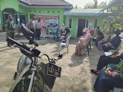 Danramil 11/Pulau Burung Letda Inf Agusturahim bersama Plh. Kapolsek Melaksanakan Pendampingan Serbuan Vaksinasi