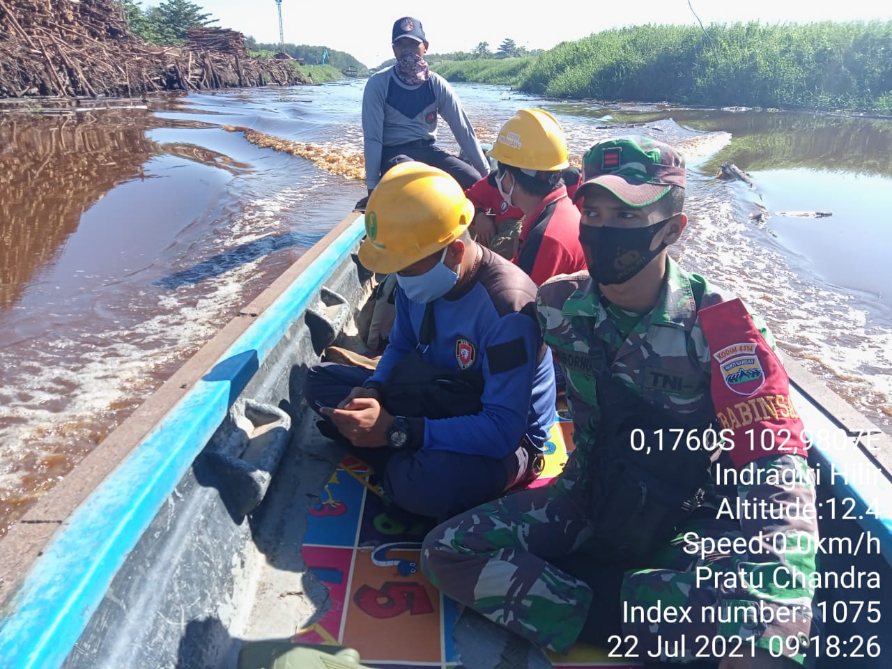 Pratu Candra Babinsa Koramil 05/Gas Kodim 0314/Inhil Melaksanakan Patroli Karhutlah dengan Transportasi Air
