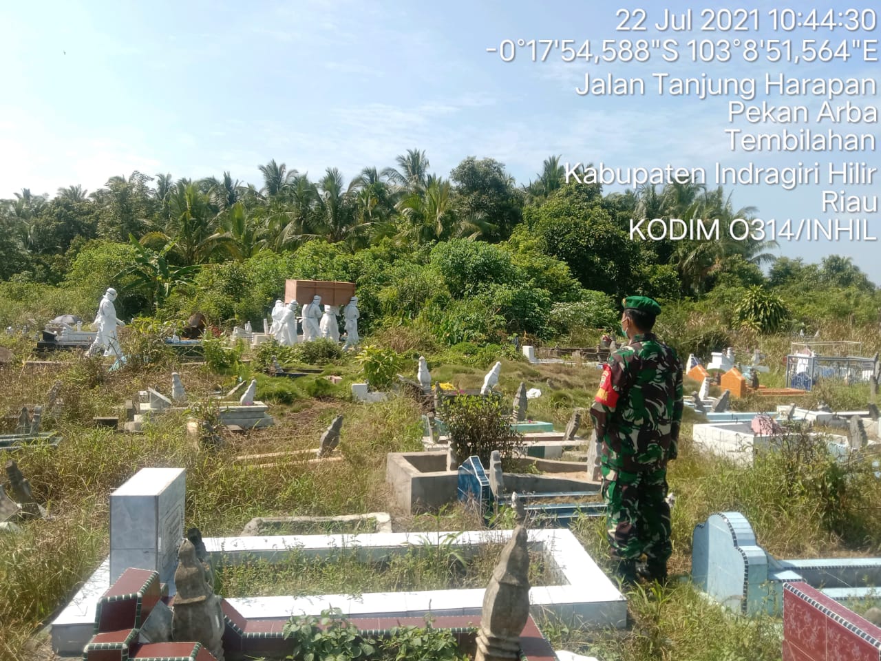 SERIBUPARITNEWS.COM, TEMBILAHAN - Pelda Indra Mukri Babinsa Koramil 01/Tembilahan bersama Tim melaksanakan pemakaman 2 orang pasien Covid-19 Kamis (22/07/2021)