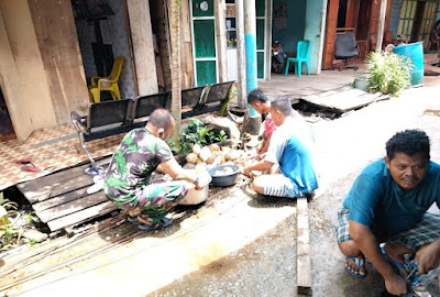 Serda Dodi Eka Putra Babinsa Koramil 10/Pelangiran Kodim 0314/Inhil Gotong royong Bersama warga dalam Acara Haulan