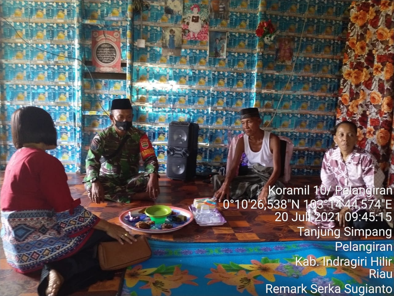 SERIBUPARITNEWS.COM,PELANGIRAN - Di Hari Lebaran Idul Adha, Babinsa 10/Pelangiran Serka Sugianto melaksanakan Komsos dan Himbauan Protkes di hari raya idul adha dengan warga masyarakat desa binaan Selasa (20/07/2021)