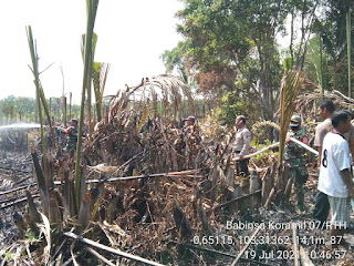 SERIBUPARITNEWS.COM,Sungai Batang - Kapten Inf Zainuar S, selaku komandan Koramil 07/Reteh turun langsung kelapangan guna meninjau kebakaran lahan dan hutan di dampingi oleh Babinsa Serda Bendri dan serda Wahyudin berserta Anggota Polsek Sungai Batang dan Masyarakat.Senin 19/07/2021