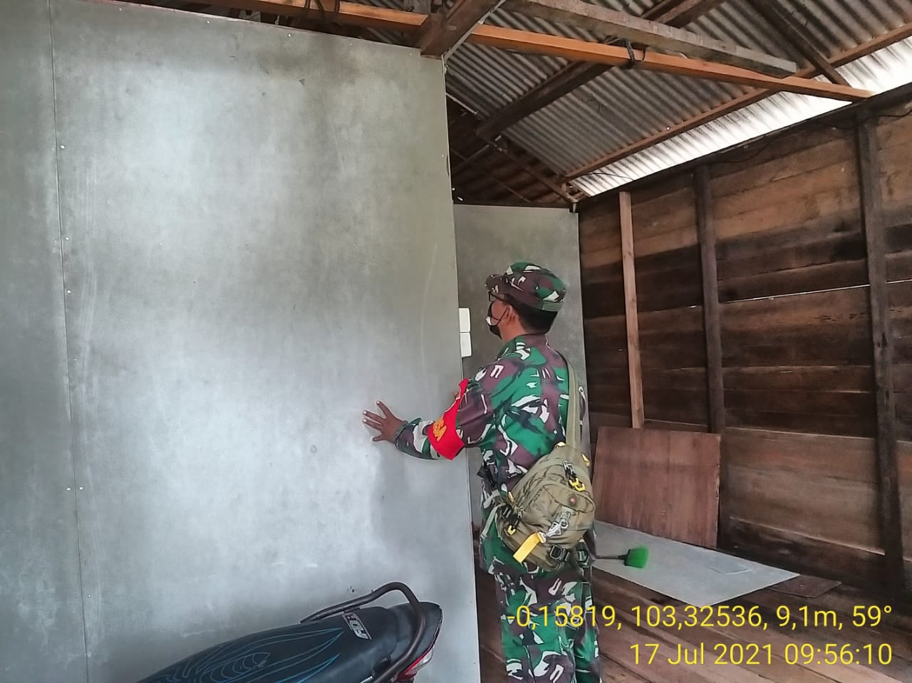 Serka Nawawi Babinsa Koramil 05/Gas Kodim 0314/Inhil memasang Dinding GRC Program Bedah Rumah di Desa Teluk pantaian
