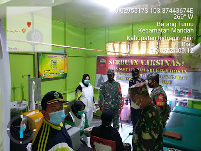 SERIBUPARITNEWS.COM, MANDAH - Sebagai Wujud Kepedulian Komando Wilayah terhadap pencegahan Covid - 19, Hari ini Koramil 08/Mandah dipimpin Danramil Kapten Arh. Uwin Suharto bersama Serda Tulus L.Gaol,Serda Erik A.Sibarani beserta Bhabinkamtibmas dan Tim Gugus Kesehatan  Melaksanakan Kegiatan pendampingnya  Pelaksanaan Vaksinasi suntik vaksin Covid bersama tim Gugus Kesehatan Sabtu (17/07/2021)
