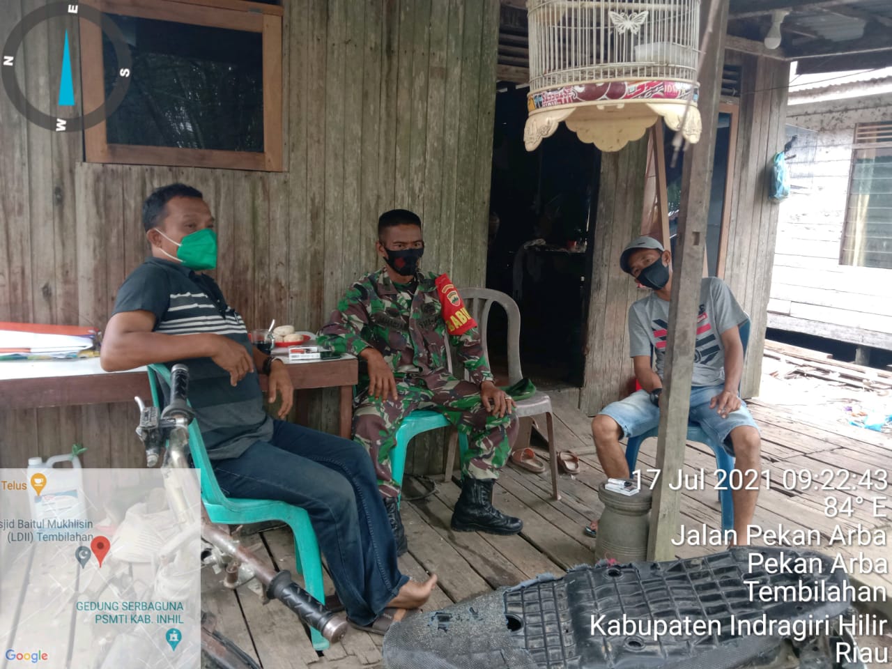 SERIBUPARITNEWS.COM, TEMBILAHAN - Di tengah Padatnya kegiatan Apter dalam pembinaan wilayahnya, Pelda Jaharzam Babinsa Koramil 01/Tembilahan menyempatkan melaksNakan  komsos Dengan ketua RT 01/RW 06 Kelurahan  pekan Arba kecamatan Tembilahan Bapak  Sahrian Sabtu (17/07/2021)