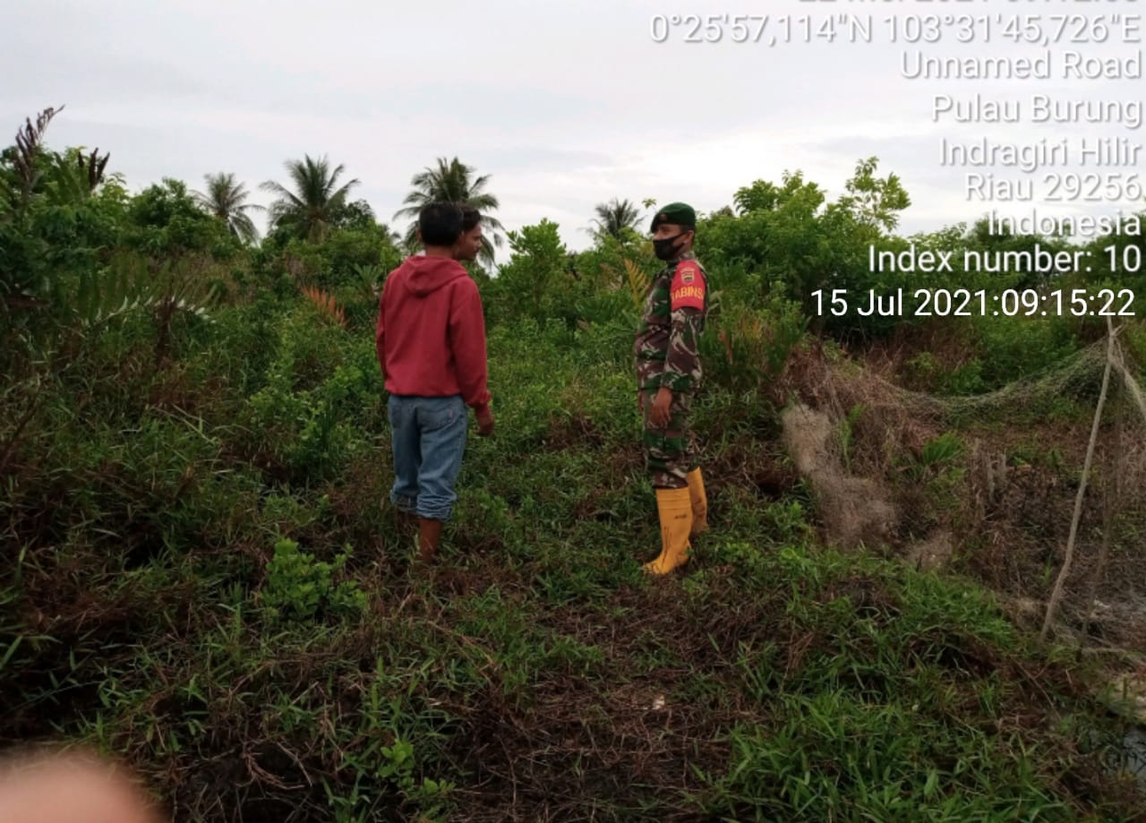 SERIBUPARITNEWS.COM, PULAUBURUNG - Babinsa Koramil 11/Pulau Burung Praka Dedi Hariyawan masih rutin melaksanakan kegiatan patroli dan sosialisasi karhutla Kamis (15/07/2021)