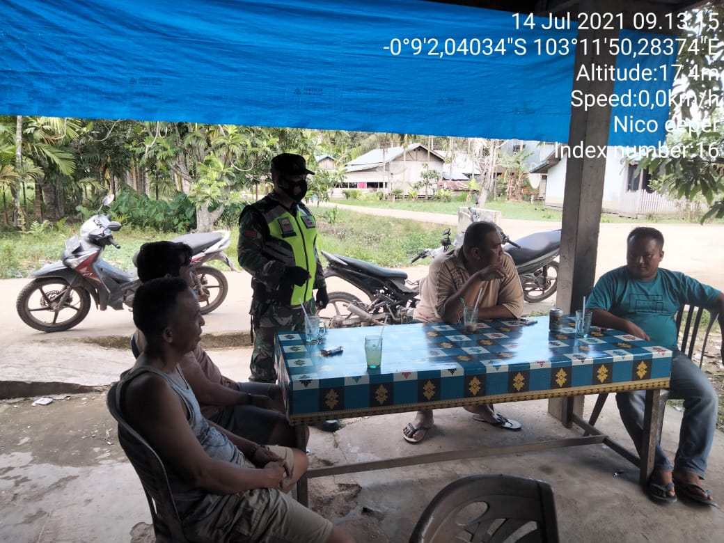 Babinsa memberikan pesan agar pemilik kedai kopi   dan warga berhati hati terhadap Covid -19,  karena berdampak kepada keluarga dirumah nantinya