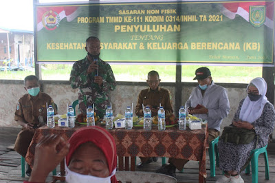 "Jadi kegiatan non fisik TMMD untuk wilayah Kodim 0314/Inhil dilaksanakan di disini. Untuk mensukseskan penyuluhan KB Kesehatan ini mari diikuti dengan baik dan seksama agar pengetahuan-pengetahuan tentang keluarga sehat dapat diterapkan dalam kehidupan sehari-hari," tuturnya.