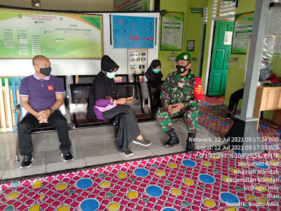 SERIBUPARITNEWS.COM, MANDAH - Di saat pandemik semakin meningkat , Babinsa Koramil 08/Mandah Koptu Adlis  perlu Melaksanakan koordinasi  tentang pelayanan kesehatan dan keamanan bersama Kepala UPT  Puskesmas Mandah Ibu Hj.Turiah SKM Kelurahan Khairiah Mandah Kecamatam Mandah Kab. Inhil Senin (12/07/2021)