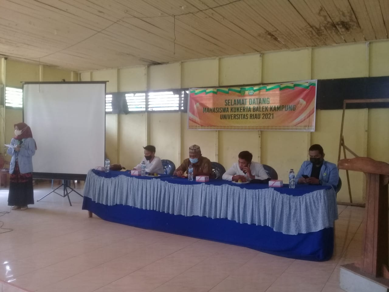 Kata sambutan sekcam keritang (Drs.H.Syamsul Erfan, M.A) mendukung penuh adik-adik mahasiswa unri dalam rangka kukerta selama 40 hari.