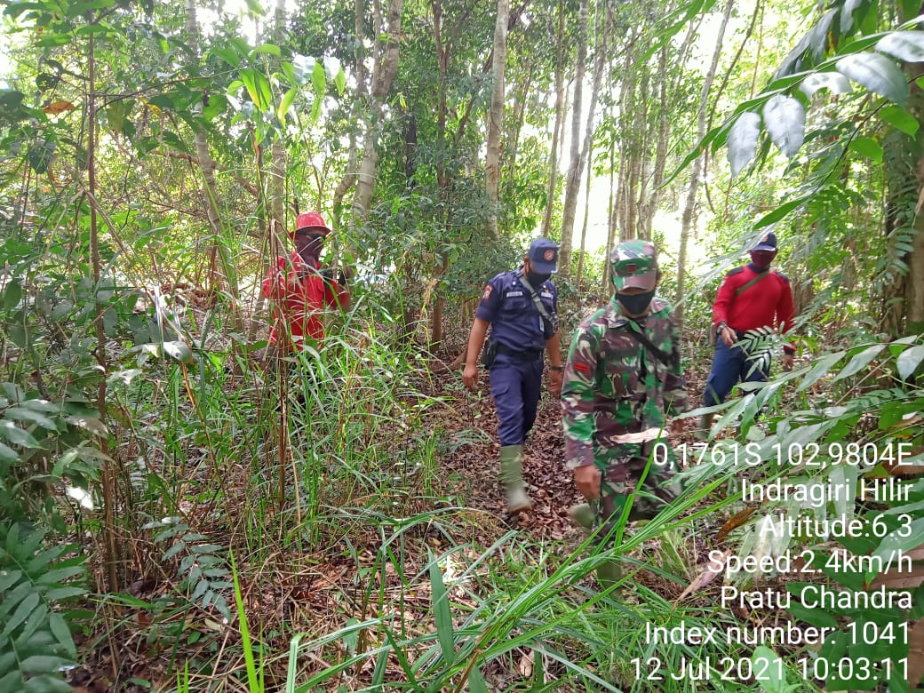 SERIBUPARITNEWS.COM,GAUNG ANAK SERKA - Babinsa Koramil 05/Gas Pratu Candra Winata melaksanakan Patroli karhutla Bersaama RPK Perusahaan Senin (12/07/2021)