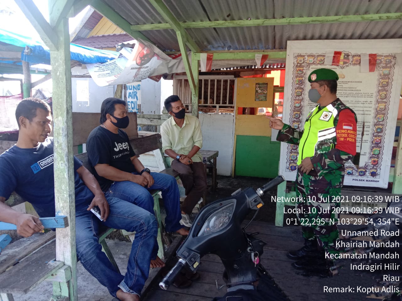 SERIBUPARITNEWS.COM, MANDAH - Dalam Upaya Pencegahan wilayah dari Pandemik Covid-19, Babinsa Koramil 08/Mandah Koptu Adlis terus melaksanakan Penegakkan disiplin protokol kesehatan covid 19 Minggu (11/07/2021)