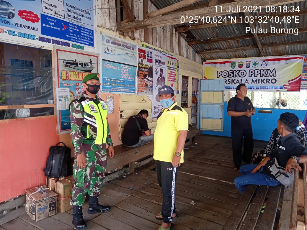 Seperti pagi ini Babinsa Koramil 11/Pulau Burung Serda Supandi Jaya terus berupaya melaksanakan Kegiatan Penegakkan Disiplin Protokol Kesehatan Covid-19 Sabtu (11/07/2021)