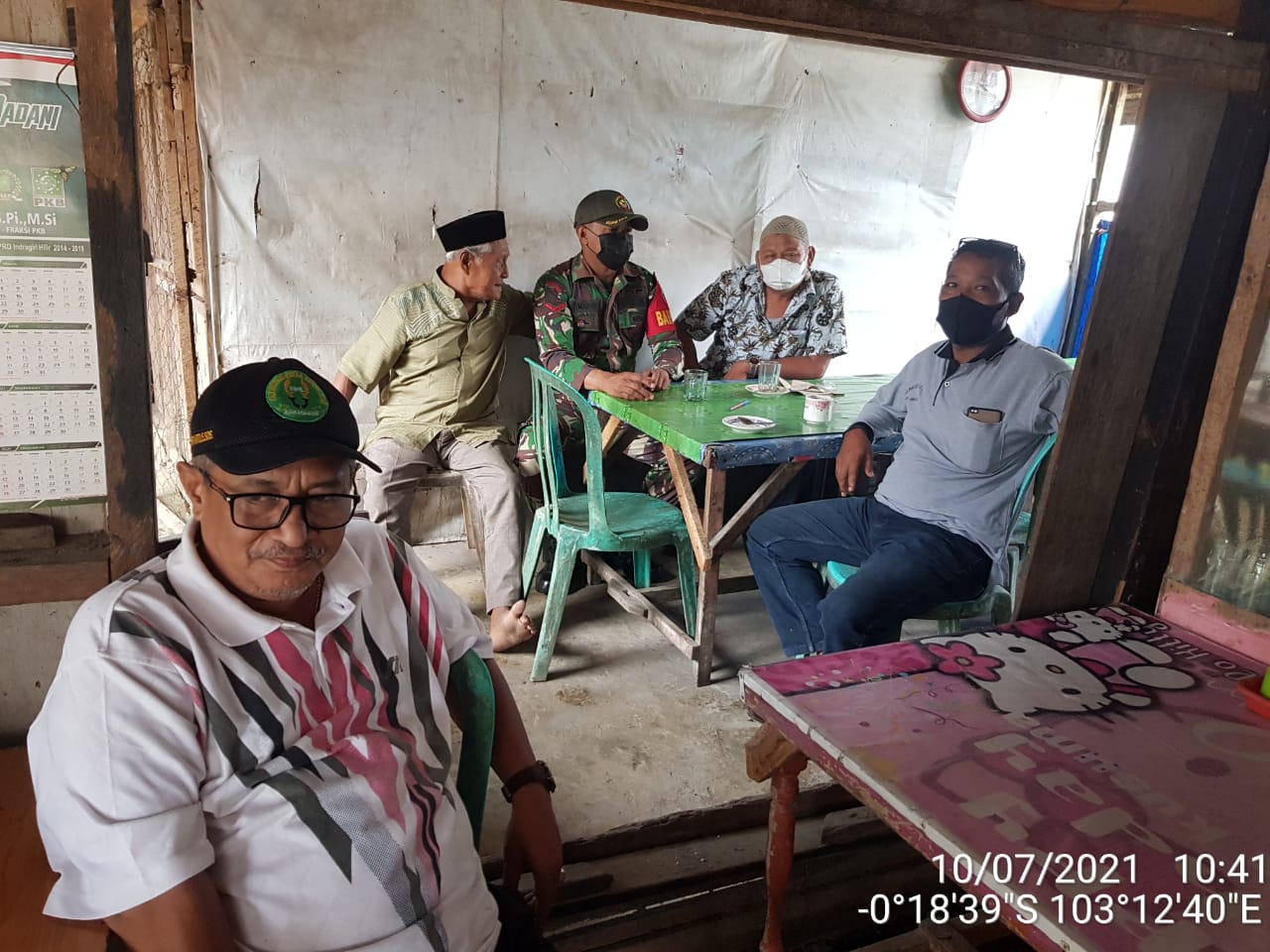 SERIBUPARITNEWS.COM, TEMBILAHAN - Babinsa Kelurahan Sungai Perak Kopda Kamarudin  melaksanakan Komsos bersama  RT 08 Bpk Zulkipli dengan pemilik Warung Bapak  Masni  Sabtu (10/07/2021)