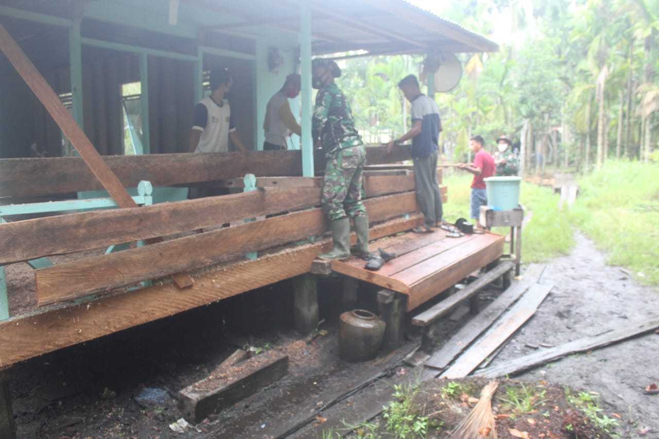 SERIBUPARITNEWS.COM,Indragiri Hilir, - Setelah sekian hari tertunda, proses peregangan Surau Baitul Rahman hari ini mulai di kerjakan kembali oleh Satgas TMMD bersama masyarakat, Sabtu, (10/07/2021).
