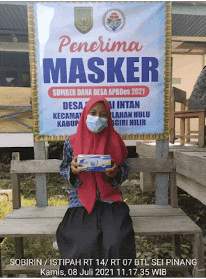 Penyaluran masker kesehatan merupakan salah satu upaya Pemdes Sungai Intan Kecamatan Tembilahan Hulu dalam rangka Pencegahan/Penanganan Covid -19 di Desa Sungai Intan