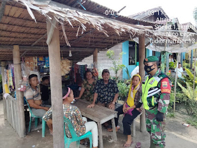 Babinsa Menghimbau agar warga memakai masker dan menjaga jarak agar terhindar dari penularan Covid -19