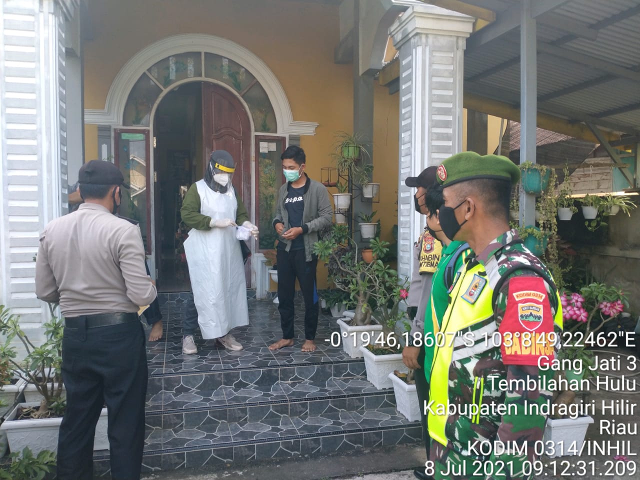 SERIBUPARITNEWS.COM, PELANGIRAN - Sertu Masri Babinsa Koramil 01/Tembilahan Bersama Tim Melaksanakan Tracing,Pcr  di Wilayah Kerja Puskesmas Tembilahan Hulu Jumat (09/07/2021)