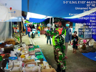 SERIBUPARITNEWS.COM, MANDAH - Babinsa Koramil 08/Mandah Kodim 0314/Inhil Sertu Haris Moni melaksanakan kegiatan Penegakkan  Disiplin di Desa  Bekawan Kamis  (08/07/2021)