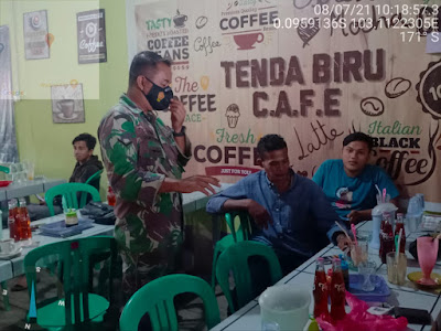 SERIBUPARITNEWS.COM, GAUNG - Peranan Apkowil sangat diharapkan terutama  dalam pencegahan Covid -19,seperti hari ini Babinsa Koramil 05/Gas,  Serda  Guntur melaksanakan penegakan disiplin  protokol kesehatan  kepada warga pengunjung warung kopi