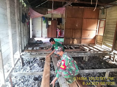 Serka Nawawi melaksanakan kegiatan bedah rumah pemasangan lantai bersama warga Kamis (08/07/2021)