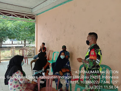 Kepada warga yang sedang menunggu, Babinsa juga menghimbau agar tetap mematuhi protokol kesehatan