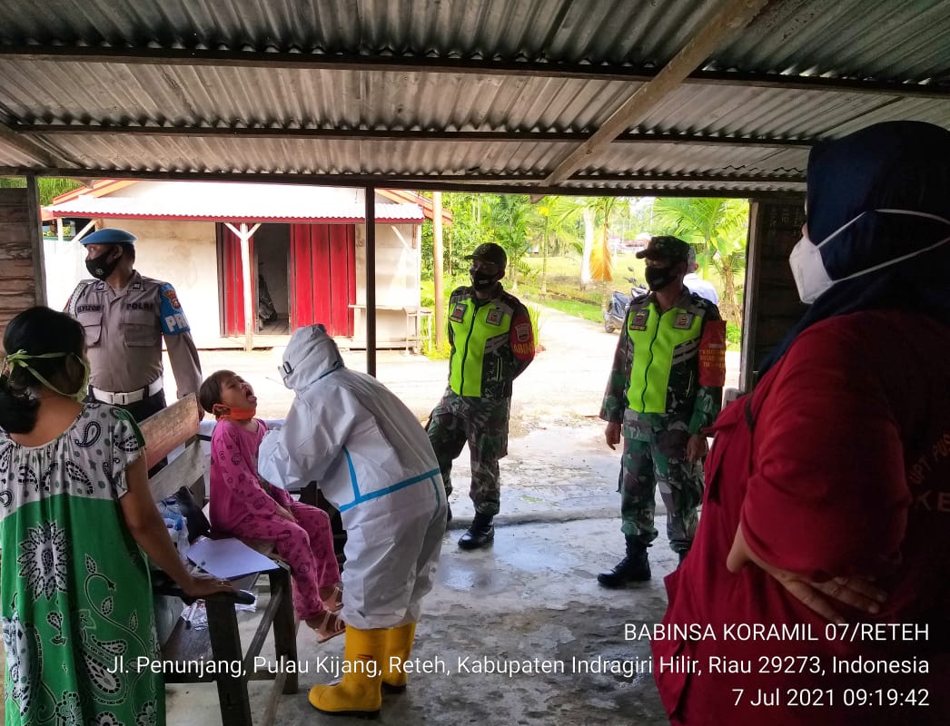 Anggota Koramil 07/Reteh bersama Anggota Polsek Reteh Sat Pol PP tem Kesehatan Pus kesmas Pulau Kijang bersama Lurah Pulau Kijang Surya Indra S.Pd, melaksanakan pendampingan Tracking  PRC, terhadap warga yang kontak erat yang terpapar Covid 19,di wilayah Kelurahan Pulau Kijang,.