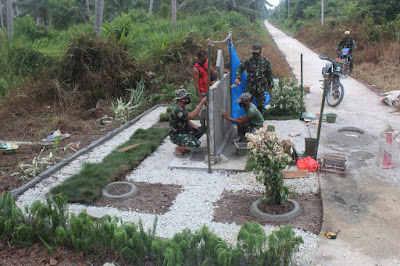"Kita yang tidak punya keahlian merelif kita gotong royong membuat taman disekitaran tugu ini agar tugu ini tampak rapi dan indah dengan dikelilingi tanaman hias atau bunga di sekelilingnya," jelas Lettu Czi Selamet Hirohito.
