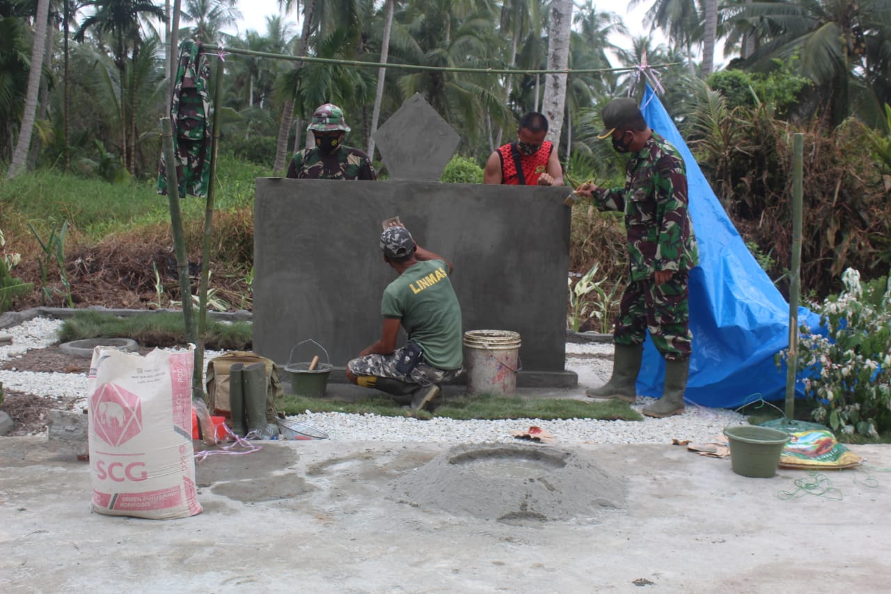 "Kita yang tidak punya keahlian merelif kita gotong royong membuat taman disekitaran tugu ini agar tugu ini tampak rapi dan indah dengan dikelilingi tanaman hias atau bunga di sekelilingnya," jelas Lettu Czi Selamet Hirohito.
