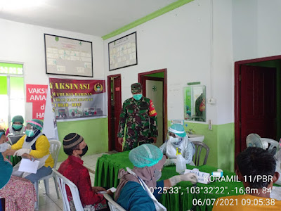 SERIBUPARITNEWS.COM, PULAUBURUNG - Progranm serbuan Vaksinasi terus dilaksanakan dari Kodam 1 Bukit Barisan, Seperti Hari ini Babinsa Koramil 11/Pulau Burung Sertu Arif D melaksanakan Kegiatan pendampingan vaksinasi sinovac dosis 2 sebanyak 15 vial yang akan di disuntikan kepada warga Pulau Burung Selasa (06/07/2021)