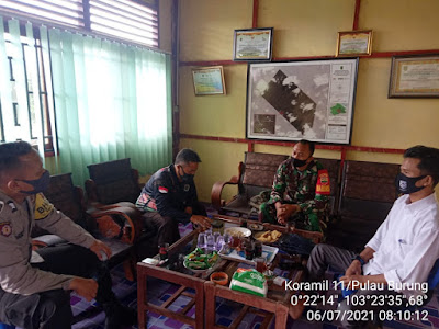 SERIBUPARITNEWS.COM, PULAU BURUNG - Di Pagi Hari tepat jam jam setelah apel pagi, Babinsa Koramil 11/Pulau Burung Serda Supandi Jaya Melaksanakan kegiatan Komsos dengan Bhabinkamtipmas, Kepdes