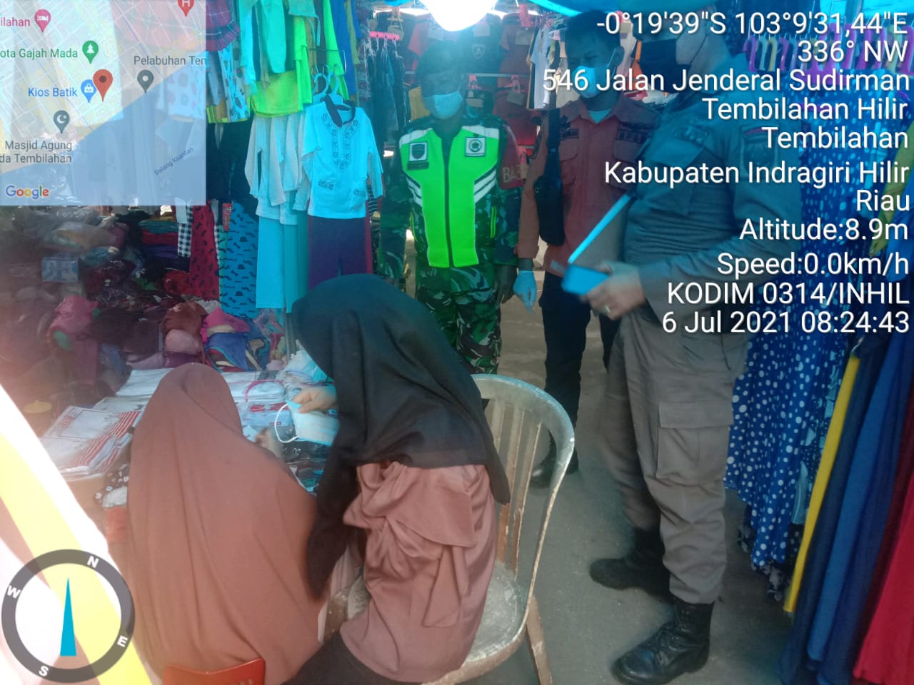 Sertu M.Yasin  Babinsa Koramil 01/Tembilahan Kodim 0314/Inhil Bersama Tim  Mencatat Pelanggaran Protokol Kesehatan  yang dilakukan pedagang ,pengunjungan dan warga di seputaran Posko Air Mancur