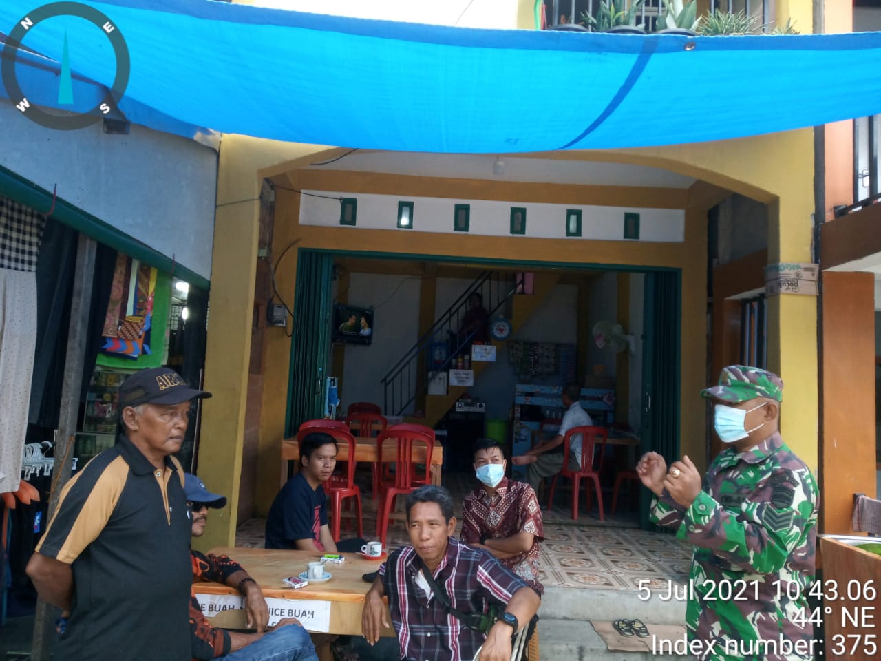SERIBUPARITNEWS.COM, GAUNG - Babinsa  Koramil 05/Gaung Anak Serka Kodim 0314/InhilSerka Tota Simbolon  melaksanakan penegakan disiplin protokol kesehatan kepada pedagang agar menggunakan masker dan menjaga jarak di Kelurahan kuala lahang  Kecamatan Gaung, Kab Inhil Senin (05/07/2021)