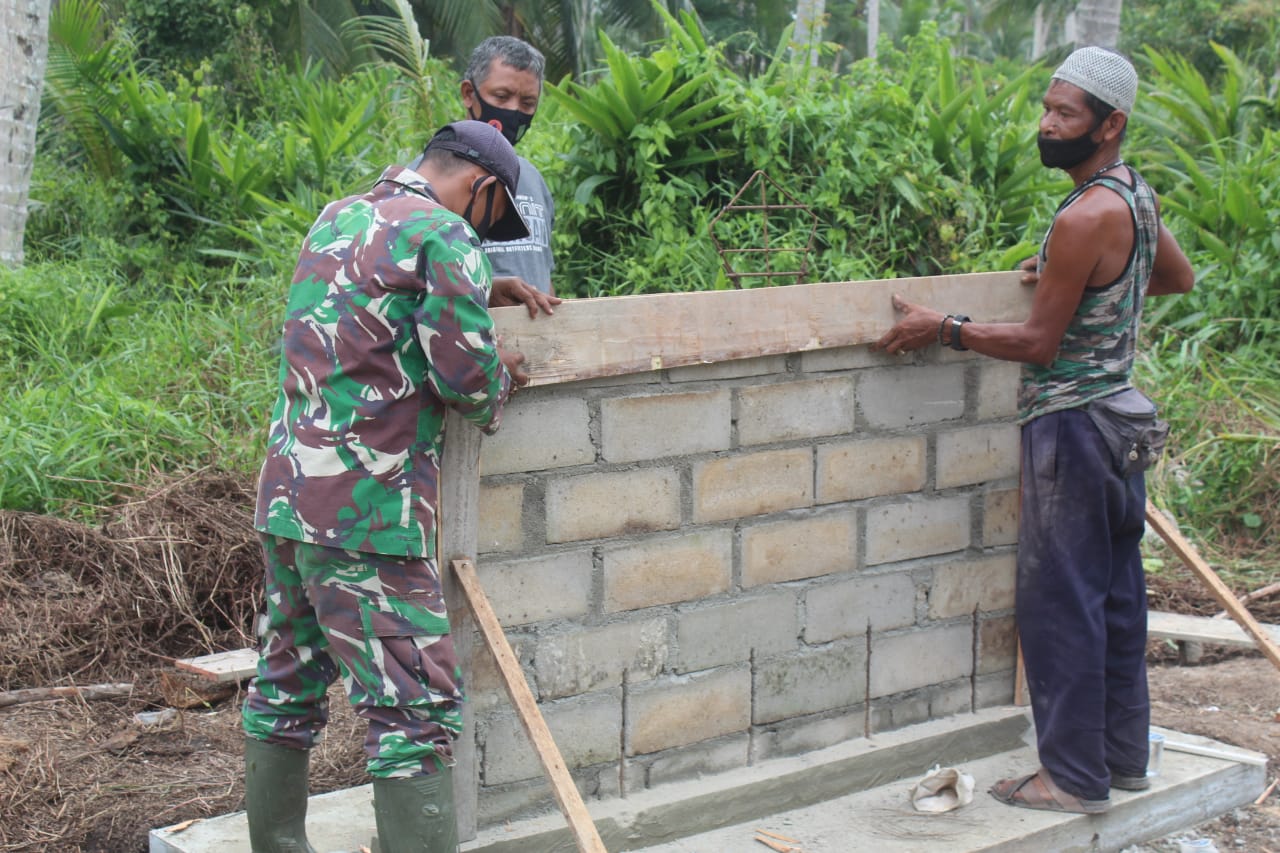 SERIBUPARITNEWS.COM,Indragiri Hilir, - Tidak hanya masyarakatnya saja yang ikut bergotong royong, Kepala Desa Teluk Bunian hari ini ikut turun tangan dalam pengerjaan pembuatan tugu prasasti TMMD ke 111 Kodim 0314/lnhil. Senin, (05/07/2021).