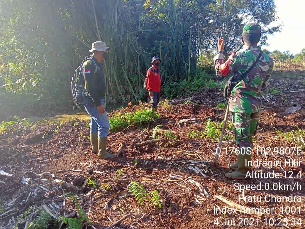 SERIBUPARITNEWS.COM, GAUNG - Babinsa Koramil 05/Gas, Pratu candra melaksanakan Patroli Agresip  daerah rawan karhutla, bersama security PT. BDL  di Desa Teluk  kabung Kecamatan Gaung,  Kab Inhil Minggu (04/07/2021)