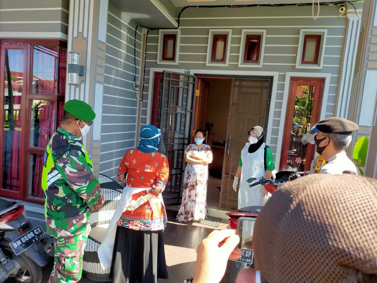 SERIBURITNEWS.COM, TEMBILAHANHULU - Sertu Khairunnas Babinsa Koramil 01/Tembilahan Bersama Tim Melaksanakan Kegiatan Tracing terhadap masyarakat sekitar lingkungan Pasien yang terkonfirmasi Positif COVID 19 oleh Petugas Posko PPKM Mikro Kelurahan Tembilahan Hulu Kecamatan Tembilahan Hulu Sabtu (03/07/2022